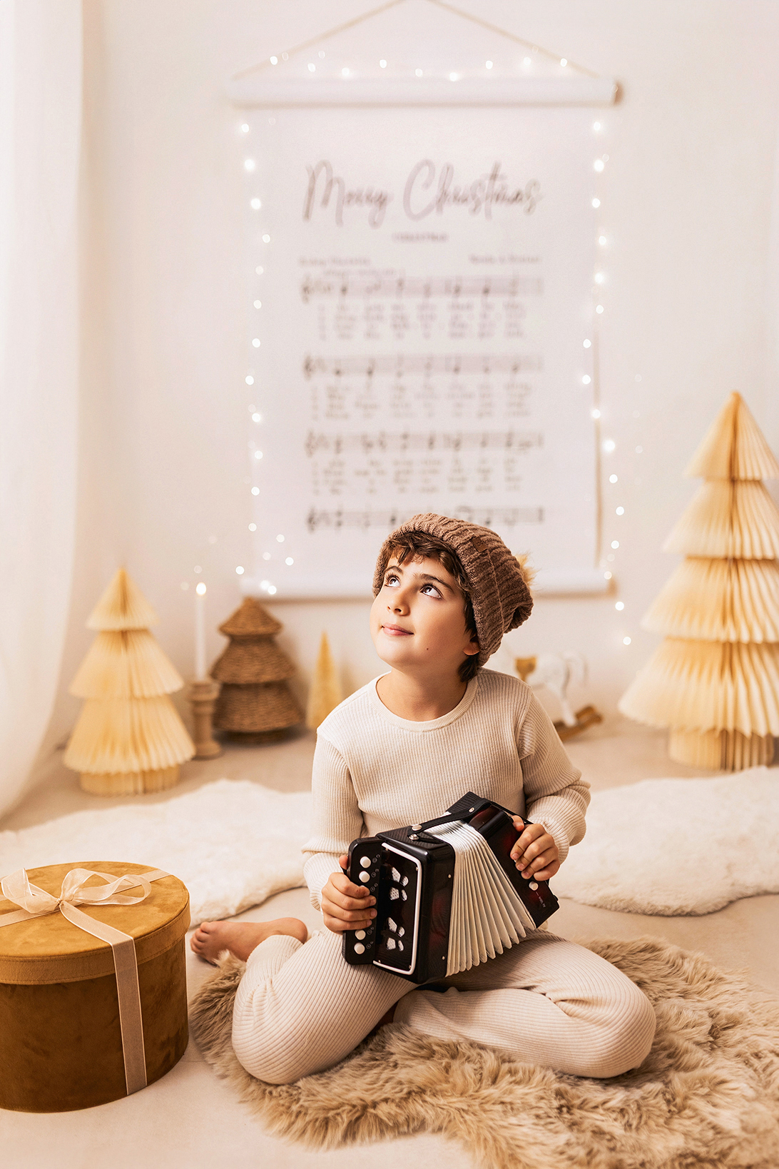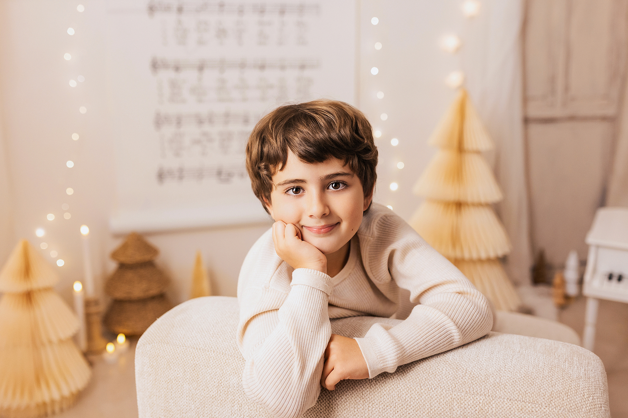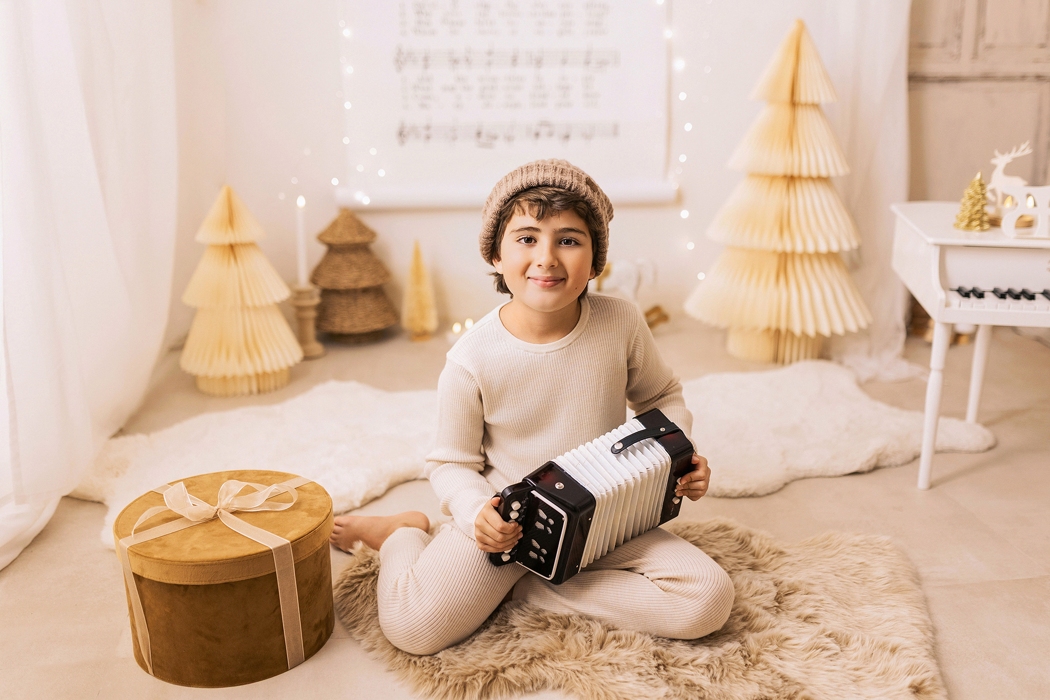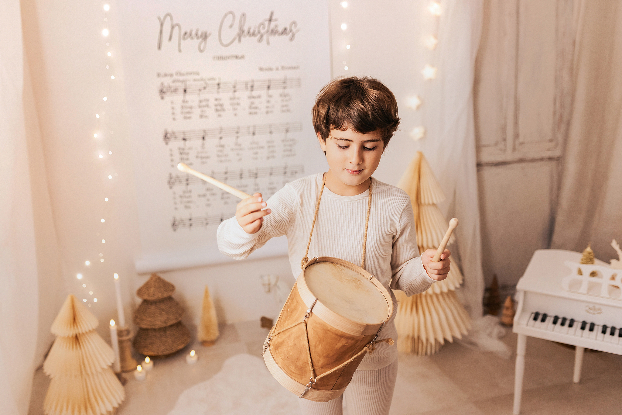 El decorado estará lleno de instrumentos para que los peques se diviertan y podamos conseguir fotos únicas, tiernas y entrañables. La iluminación será cálida y repleta de lucecitas, creando un ambiente aún más mágico.