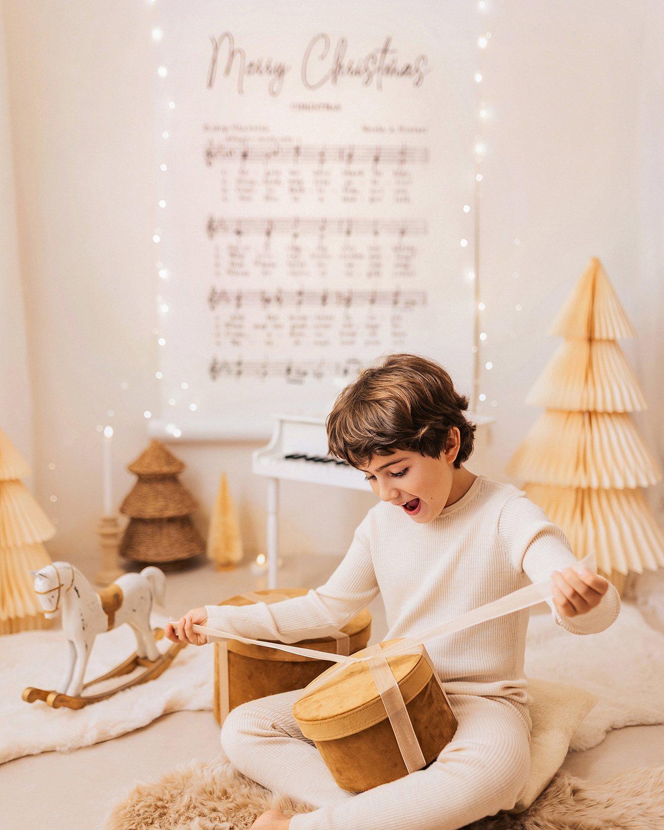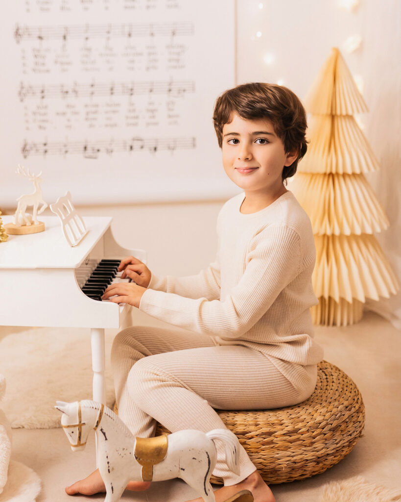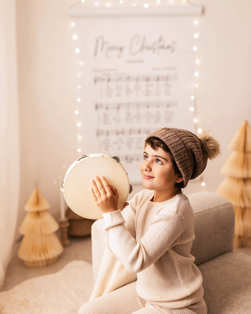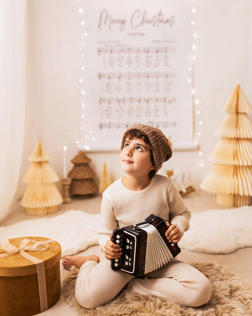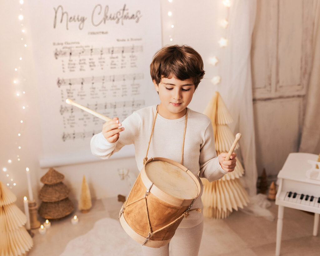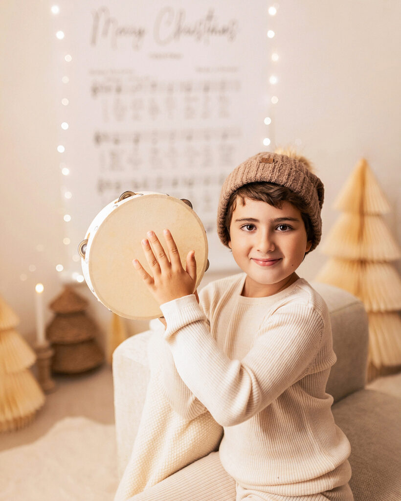El decorado estará lleno de instrumentos para que los peques se diviertan y podamos conseguir fotos únicas, tiernas y entrañables. La iluminación será cálida y repleta de lucecitas, creando un ambiente aún más mágico.